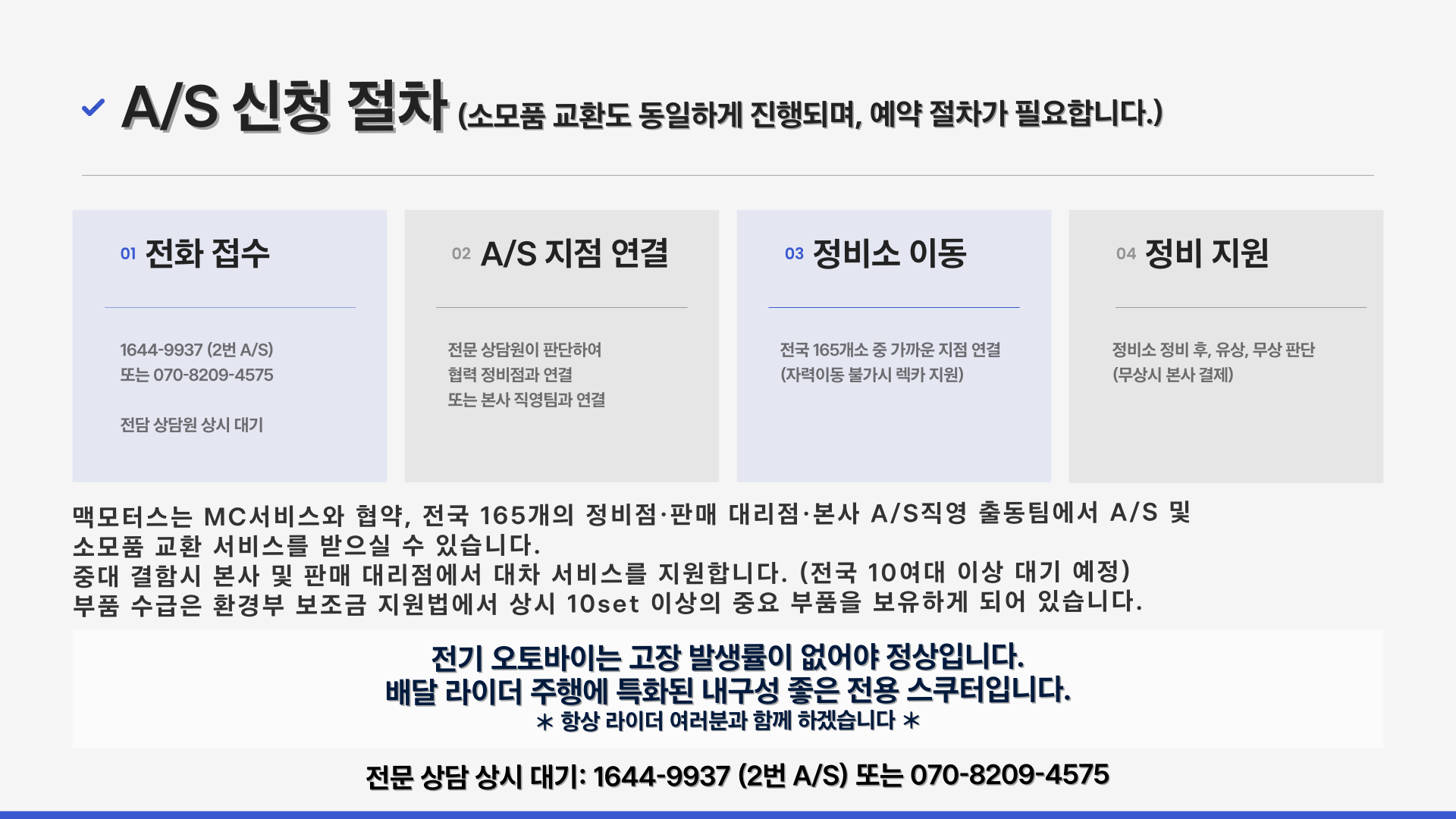 고객님의 편안한 라이딩을 위해 맥모터스가 함께합니다.