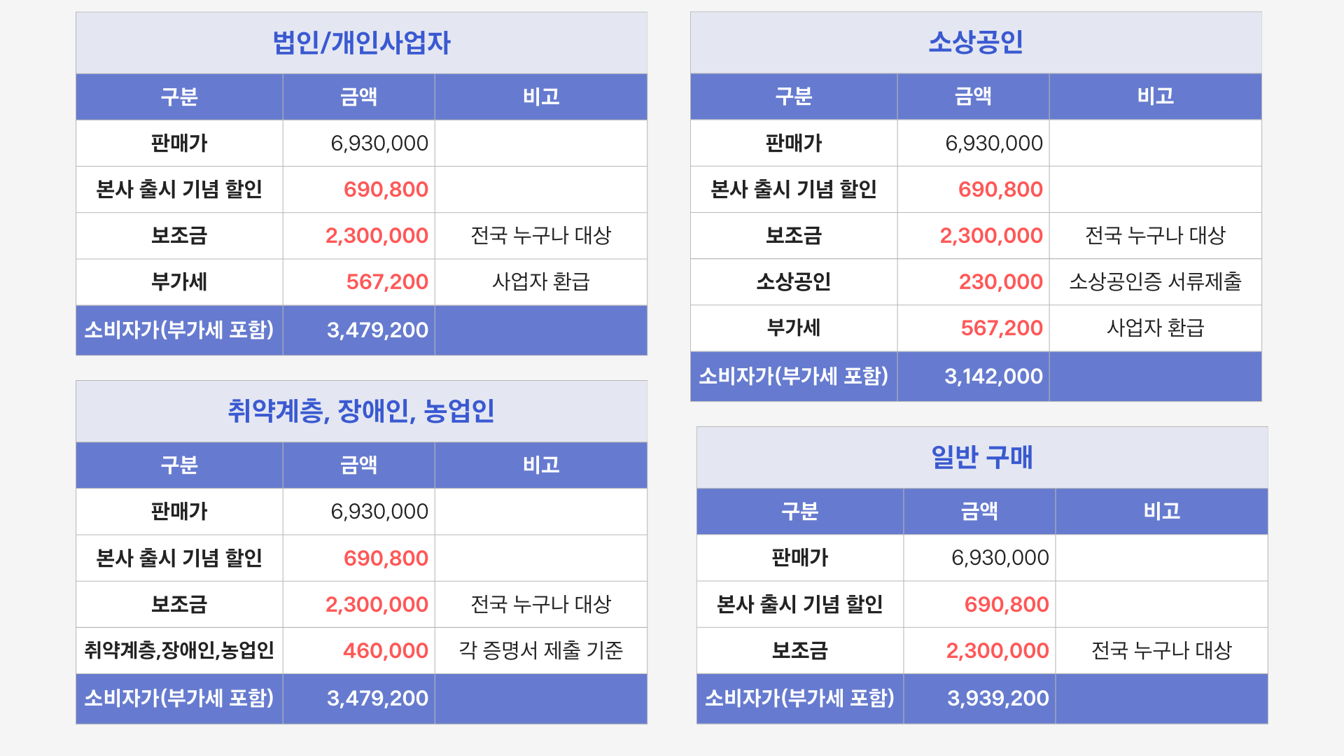 정부 보조금 신청 과정 없이 바로 구매할 수 있는 옵션입니다.